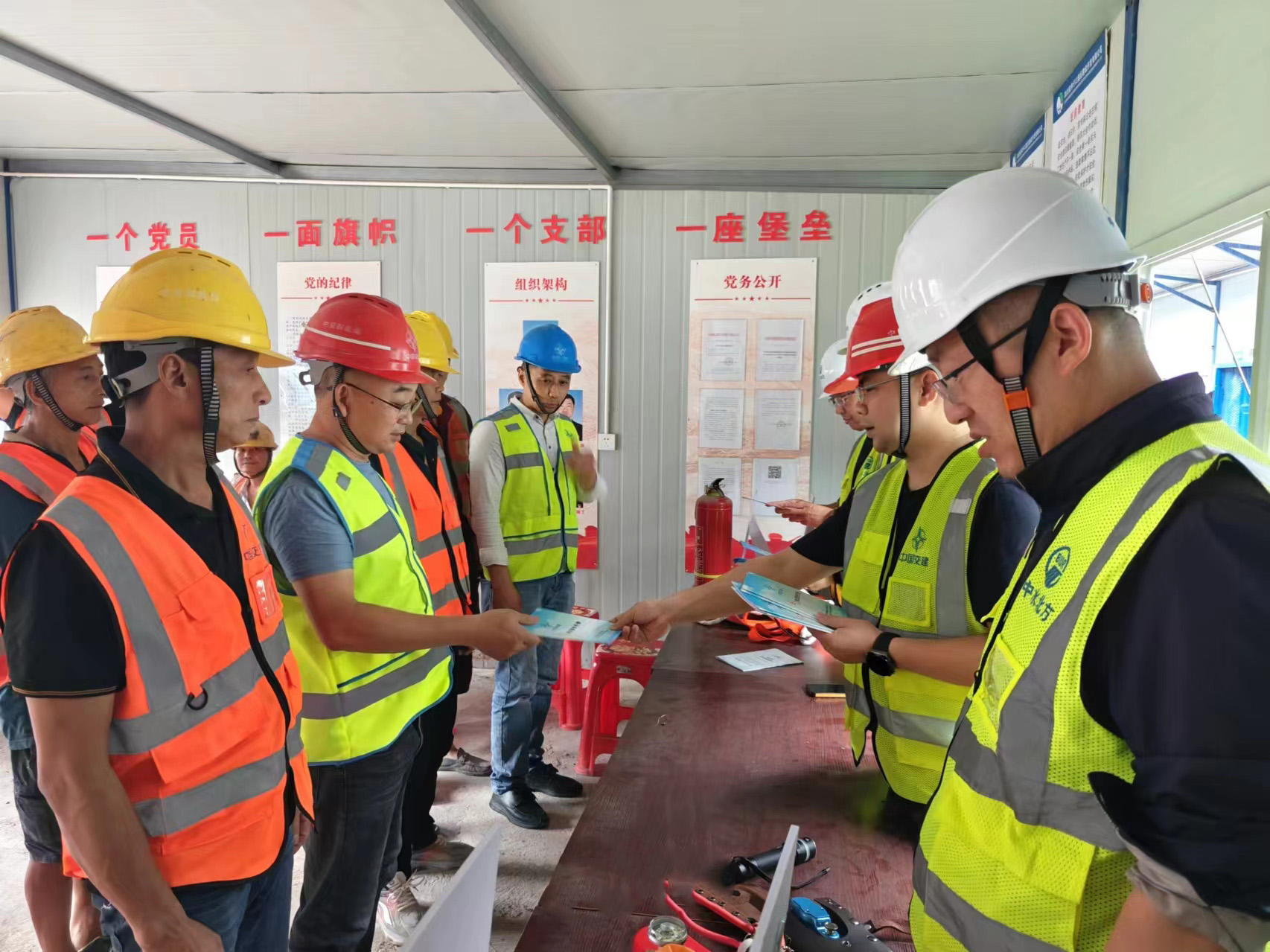 廣泛宣傳,營(yíng)造安全生產(chǎn)氛圍。在辦公駐地和施工現(xiàn)場(chǎng)設(shè)置安全宣傳欄、懸掛安全標(biāo)語(yǔ)、警示橫幅、制作安全宣傳畫報(bào),并常態(tài)化開展班前講話,將安全理念“聲”入人心。第IV標(biāo)段項(xiàng)目部組織業(yè)主單位、項(xiàng)目經(jīng)理、建設(shè)現(xiàn)場(chǎng)一線人員,在騎子寨施工現(xiàn)場(chǎng)開展“安全宣傳咨詢?nèi)铡被顒?dòng)。通過(guò)發(fā)放安全應(yīng)急知識(shí)手冊(cè)等形式,向現(xiàn)場(chǎng)管理人員及一線工人宣傳安全應(yīng)急知識(shí)、科普安全生產(chǎn)、應(yīng)急避險(xiǎn)和自救互救、職業(yè)健康等方面的知識(shí),及時(shí)解答現(xiàn)場(chǎng)人員關(guān)心的安全生產(chǎn)問(wèn)題,營(yíng)造“人人講安全、個(gè)個(gè)會(huì)應(yīng)急——暢通生命通道”的良好工作氛圍。