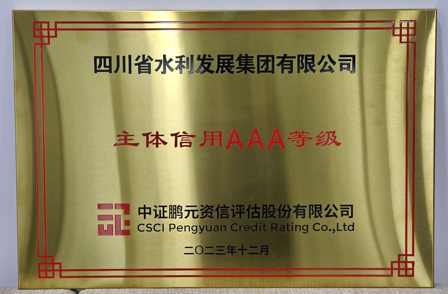 2023年12月22日,集團經(jīng)國內(nèi)權威信用評級機構中證鵬元資信評估股份有限公司出具評級報告,被評定為國內(nèi)主體最高信用評級——AAA主體信用評級,評級展望為穩(wěn)定。