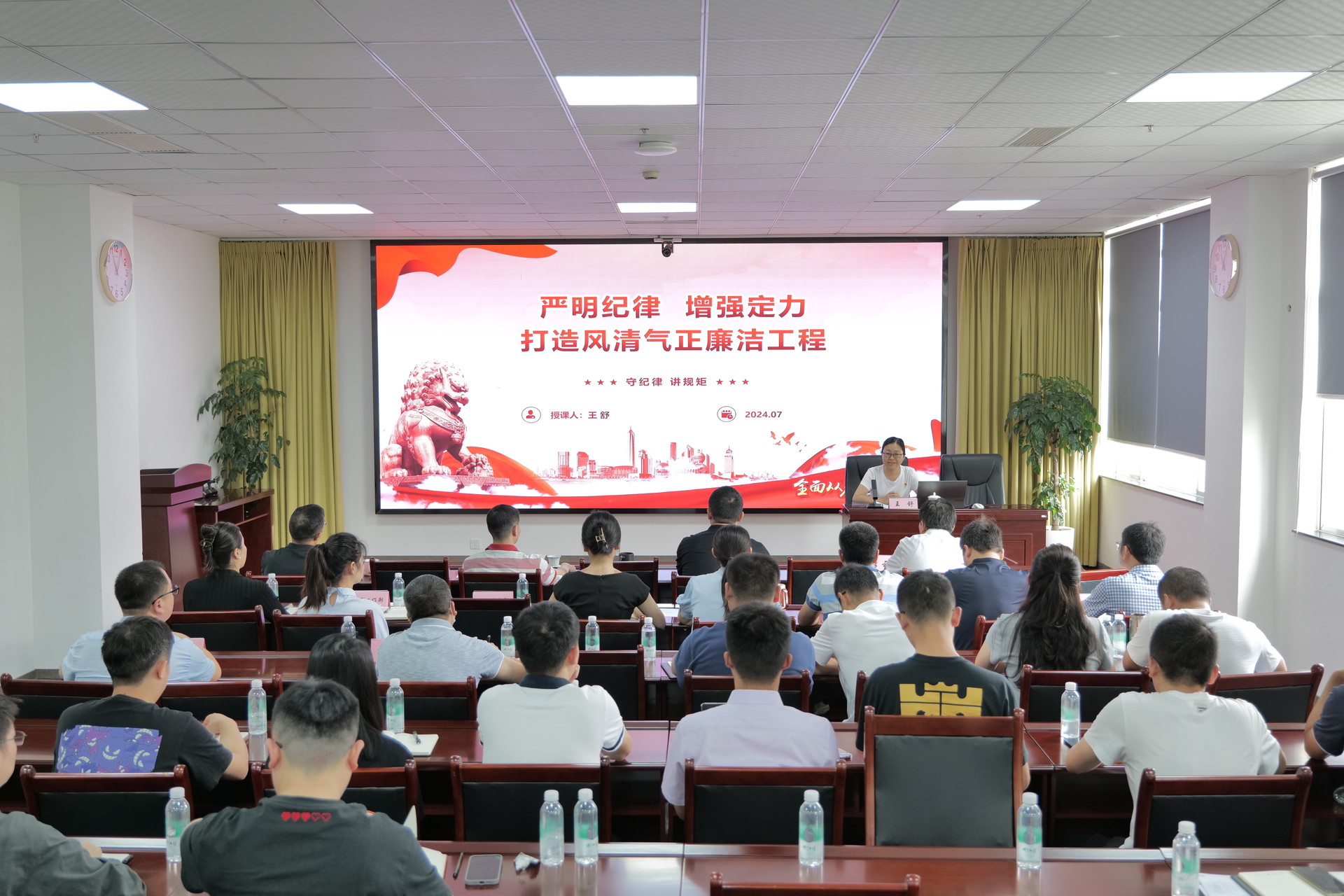 7月4日,集團副總經(jīng)理王舒到引大濟岷公司以《嚴(yán)明紀(jì)律增強定力打造風(fēng)清氣正廉潔工程》為題從理論學(xué)習(xí)錘煉黨性、嚴(yán)明紀(jì)律錘煉作風(fēng)、黨史中汲取力量三個方面,結(jié)合行業(yè)、公司特點,為公司全體干部職工上了一堂生動深刻的專題黨課。